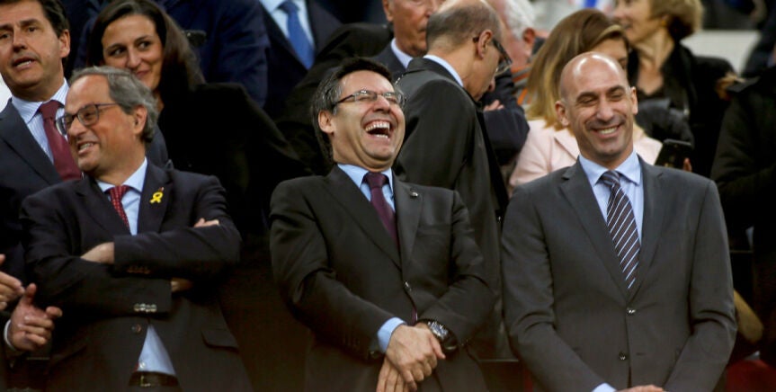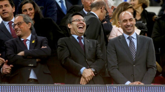 El presidente también destacó que la RFEF tuviera preparado el trofeo este mismo sábado en el Camp Nou: "Es un buen gesto. Está bien que se entregue el trofeo el mismo día que se logra la liga para poder celebrarlo antes los aficionados. Hacía tempo que no ocurría y es un buen cambio. Está bien ganar la Liga y ver la Copa".