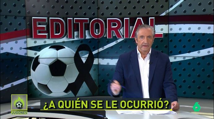 "Casi cien fallecidos y jugando al fútbol. Cientos de desaparecidos y cantando goles. ¿A quién se le ocurrió?": así de contundente ha arrancado Josep Pedrerol su editorial en 'Jugones'.