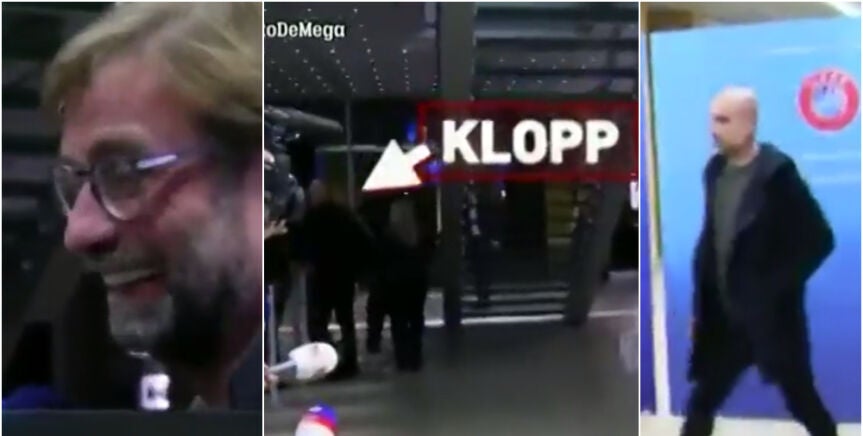 Jürgen Klopp nunca defrauda dejando divertidos momentos delante de los medios de comunicación. El entrenador del Liverpool estaba atendiendo a los periodistas congregados en Nyon cuando por detrás llegaba Guardiola.