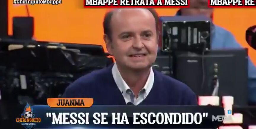Juanma Rodríguez entró en el plató en 'El Chiringuito' hablando francés después de la exhibición de Kylian Mbappé y del PSG en el Camp Nou (1-4).