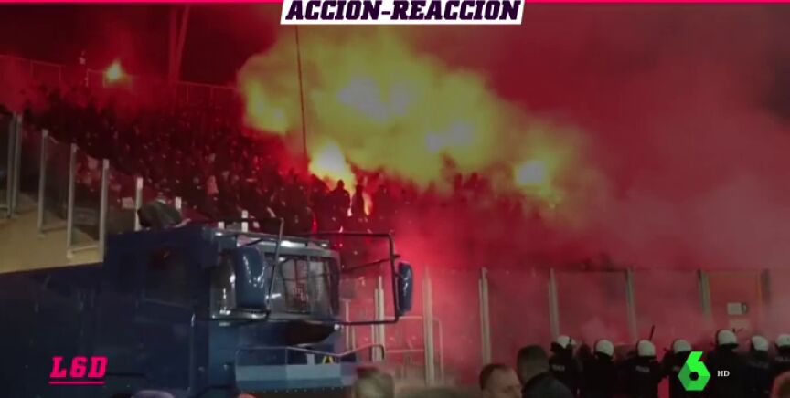 La contundente respuesta de la Policía al infierno de bengalas de los ultras
