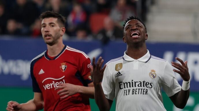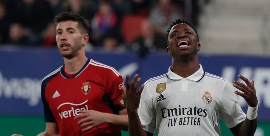 Vinicius volvió a ser, una semana más, el centro de las miradas en un partido del Real Madrid. También el foco de atención de sus rivales y, de nuevo, el de los aficionados. Uno de ellos, en El Sadar, en el encuentro que jugaron los blancos ante Osasuna, fue quien realizó un lamentable insulto al brasileño en el mito de silencio en memoria de las víctimas de los terremotos de Turquía y de Siria.