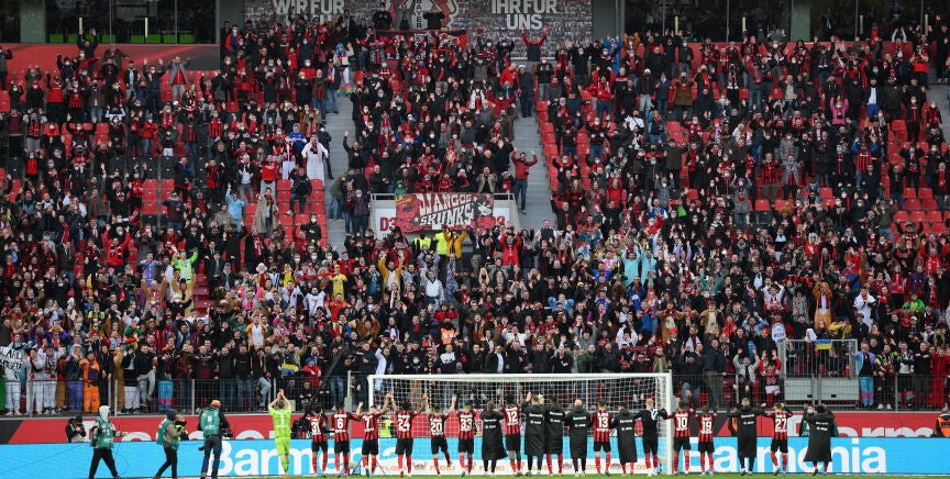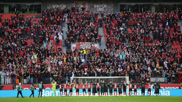 "¡Policía Nacional: hijos de p***!" se puede leer en la grada del BayArena. A pesar de que todo ocurrió hace una semana, quisieron mandar el mensaje.