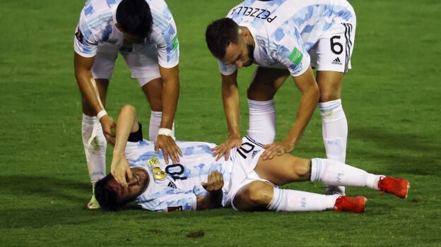 En su vuelta con Argentina tras el éxito de la pasada Copa América, Messi no se lesionó de gravedad de milagro. Una entrada criminal por parte del venezolano Adrián Martínez sobre el minuto 30 de partido hizo temer los peores presagios.