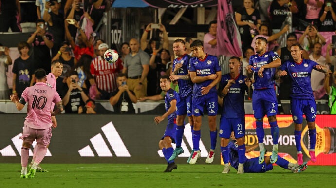 El equipo en propiedad de David Beckham llegó a ir perdiendo por cuatro goles a dos a falta de 10 minutos para el final, pero en ese momento apareció el argentino. De sus botas salió el 4-3, tras un centro que se marcó en su propia portería el guardameta Farfán. Cinco minutos después, Leo Messi volvió a marcar de falta, como ya hizo en su debut con el equipo estadounidense.