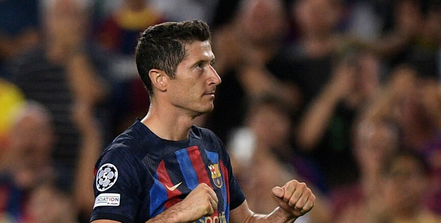 El delantero polaco marca tres goles en su estreno en Champions League con el Barça. Los de Xavi Hernández empiezan con buen pie la fase de grupos (5-1).