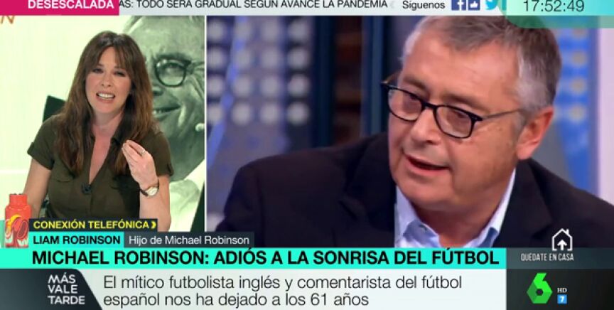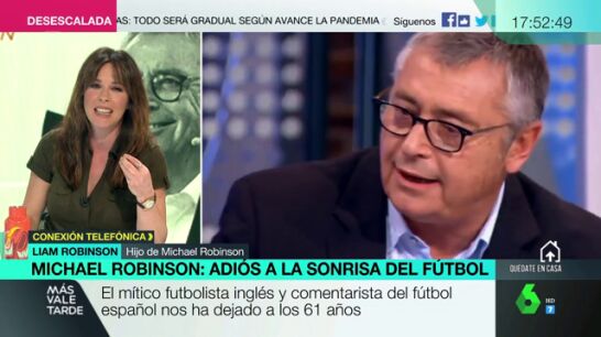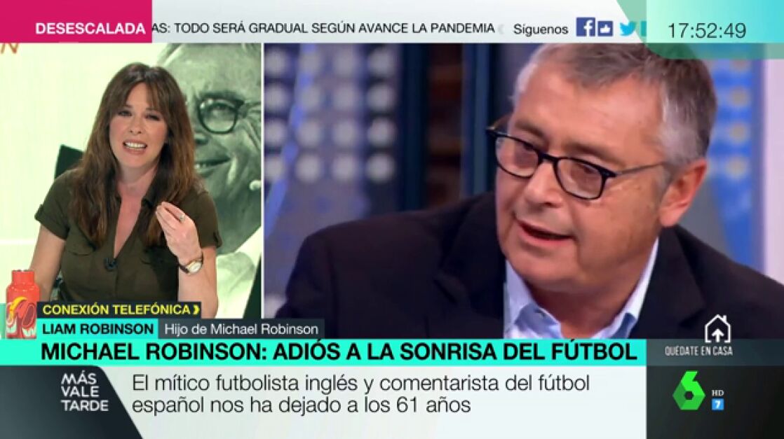 El hijo de Michael Robinson, Liam Robinson, ha sido entrevistado en 'Más Vale Tarde' y ha hablado de cómo le gustaría que fuera recordado su padre. "Con una sonrisa", ha dicho.