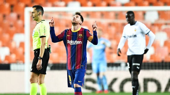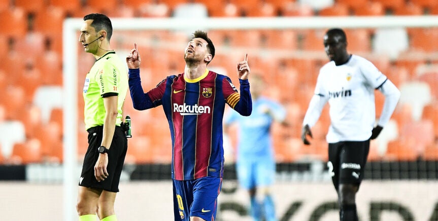 Lionel Messi, 'fracontirador' en Mestalla: su golazo de falta para mantener al Barça en la pelea por LaLiga