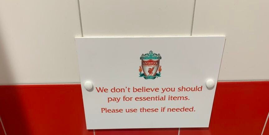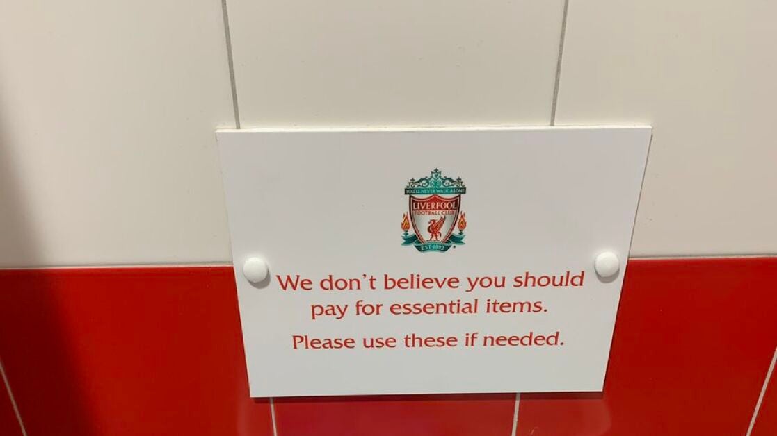 El Liverpool ha dado ejemplo. El club inglés ha decidido colocar compresas y tampones gratis en los baños de mujeres de Anfield, ofreciendo a aquellas mujeres que los necesiten que los usen de manera gratuita.