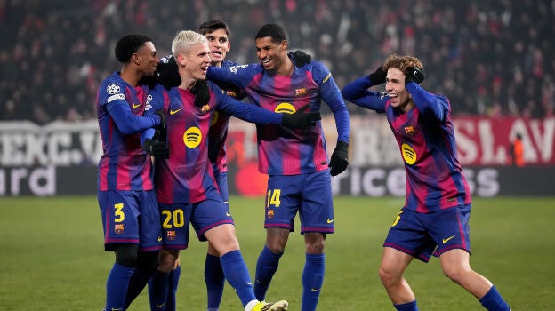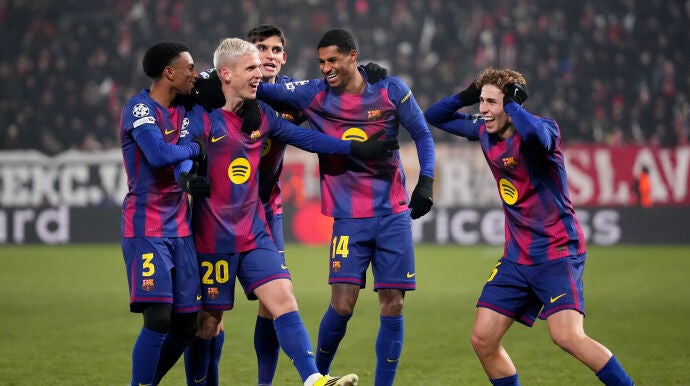 El Barça está a un paso de meterse entre los ocho mejores de la Champions y librar una eliminatoria. Derrotó al Slavia de Praga (2-4) y se lo jugará todo el miércoles que viene contra el Copenhague en el Camp Nou. Necesitará ganar y goles, varios goles. Dani Olmo y Fermín hicieron fueron los protagonistas de la gélida noche, con el termómetro en negativo.