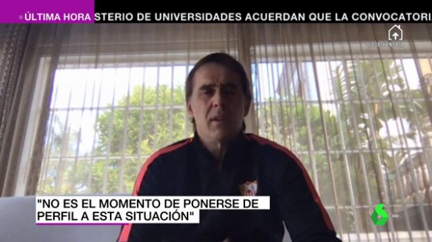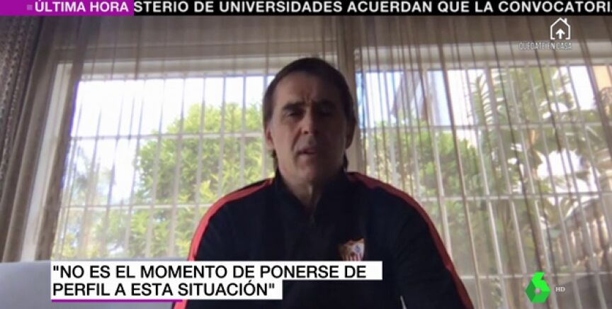 El entrenador del Sevilla, Julen Lopetegui, ha señalado en 'Jugones' que "si los clubes no van a cobrar lo que está estipulado" entendería que "se tendría que aceptar" una rebaja en los sueldos.