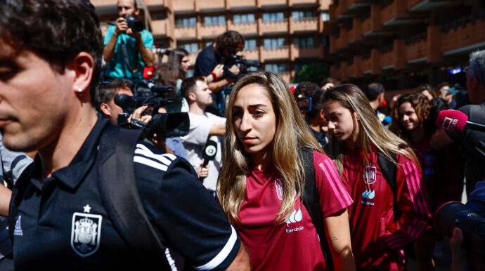 "Pues mal, ¿cómo va a ser?", contestaba al ser preguntada por el sentir de las jugadoras ante esta situación. También ha contestado al ser preguntada por la situación de Jenni Hermoso, que no ha sido convocada para "protegerla", como comentó la seleccionadora, Montse Tomé. "¿Proteger a Jenni de qué? Si está todo bien, ¿no?", preguntaba con todo irónico la jugadora.