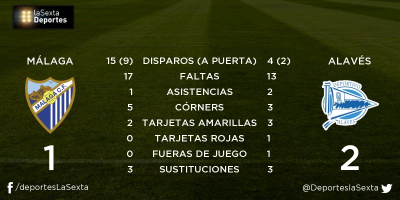 El Alavés siguió muy cómodo, sin sufrir y haciendo daño al Málaga, que aún así pudo empatar con un lanzamiento de Charles, que tocó lo justo Pacheco, para desviar a córner. Doce minutos de la segunda parte y la acción más peligrosa del Málaga, que se fue al ataque, le metió una marcha más, y en una contra, Sandro, pudo igualar, pero su disparo pegó en el poste.