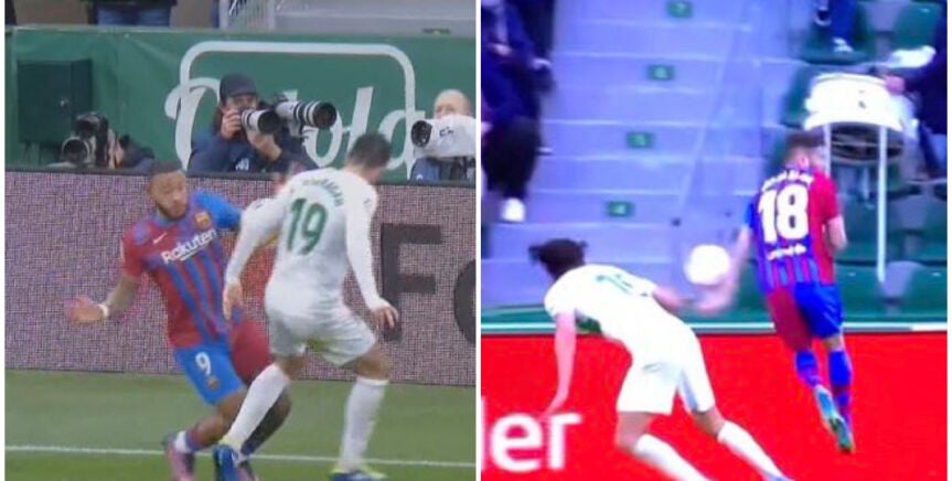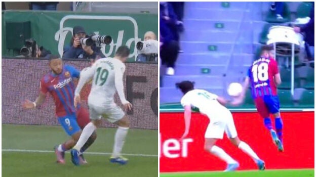 Las manos de la polémica, protagonistas en la victoria del Barça ante el Elche: la de Barragán, penalti; la de Jordi Alba, no