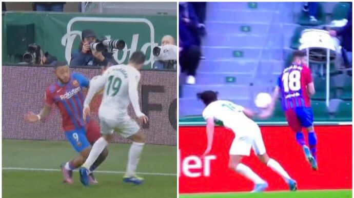 El que sí se pitó fue cometido por Barragán. En la acción, forcejeando con Memphis, el balón sale hacia arriba y le golpea en la mano tras un rechazo.