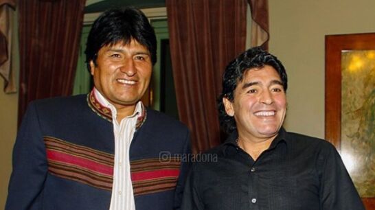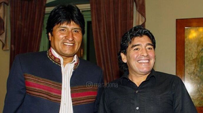 Maradona ya mandó un mensaje a Morales cuando ganó las elecciones de Bolivia: "Ahora saben bien que nosotros tenemos el poder del amor y del cariño a la gente. Los demás quieren solamente enriquecerse, nosotros queremos que la gente coma. Te felicito, Evo, hermano".
