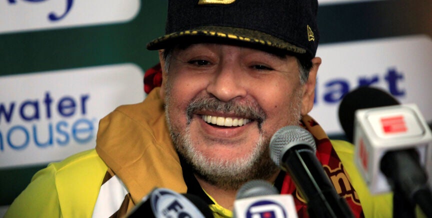 El entrenador de los Dorados de Sinaloa, el argentino Diego Maradona, felicitó hoy a su paisano Bruno Marioni, técnico de los Pumas, por el triunfo en los cuartos de final de la Copa Mx del fútbol mexicano.