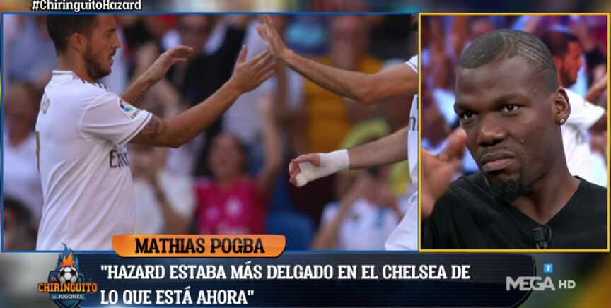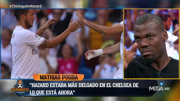 Mathias Pogba, jugador del Manchego y tertuliano en 'El Chiringuito', comentó el estado físico de Eden Hazard. Cree que el belga estaba más 'fino' cuando jugaba en el Chelsea de lo que está ahora.