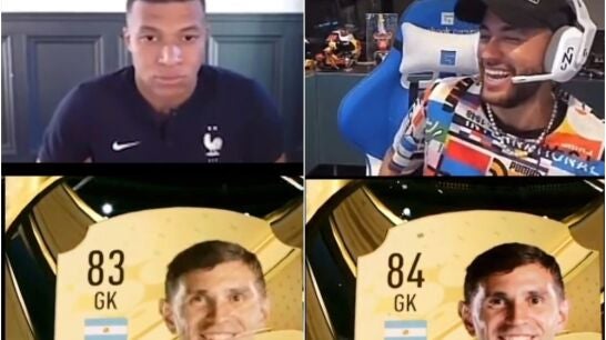 ¡Mbappé juega al FIFA y le toca el 'Dibu' Martínez! La cara de Neymar lo dice todo