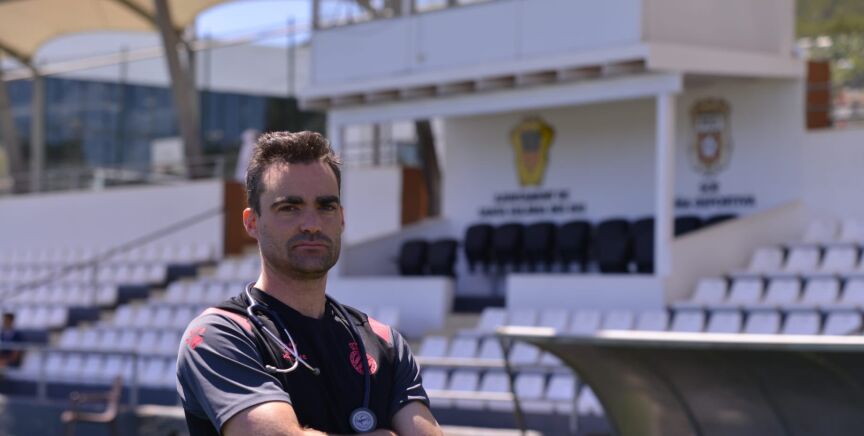 Enrique Pérez, médico del Epanyol B, saltó a la grada en pleno partido para ayudar a un aficionado del equipo rival que estaba convulsionando.