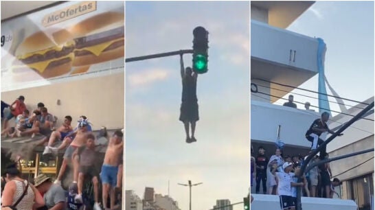 Esta es una de las imágenes más 'normales', porque luego sucedieron cosas de todo tipo. Por ejemplo, se pudo ver como varios hinchas estaban subidos en lo alto de un autobús en marcha.