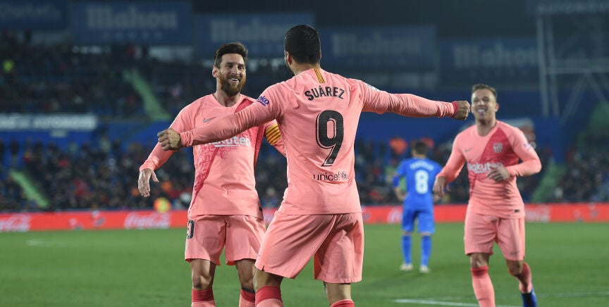 Messi y Luis Suárez lideran una victoria sufrida ante el Getafe y hacen más líder al Barcelona