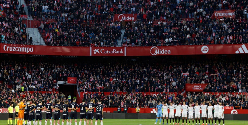 Minuto de silencio en el Sevilla-Athletic en memoria de Fernando Huerta, maquinista del tren de Gelida y socio del Sevilla