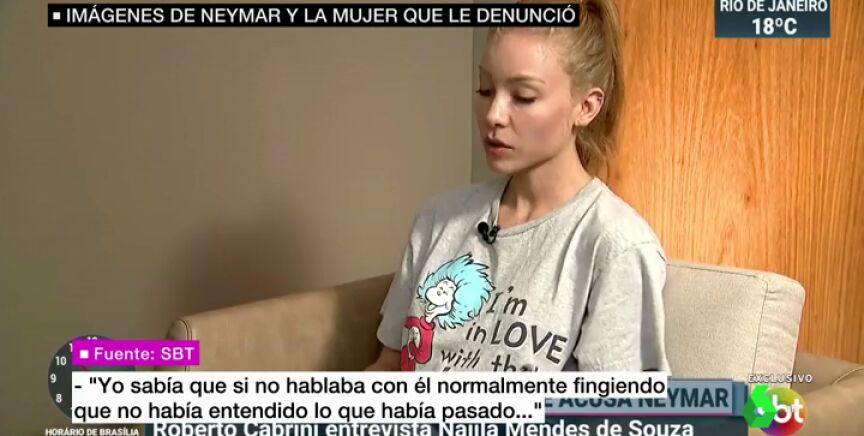 La modelo Najila Trindade Mendes afirmó que fue víctima de violación y agresión por parte de Neymar. "Fui víctima de violación, de agresión junto a violación", dijo al canal SBT en su primera entrevista a un medio de comunicación tras presentar la denuncia. El supuesto vídeo de la discusión ya se ha filtrado.