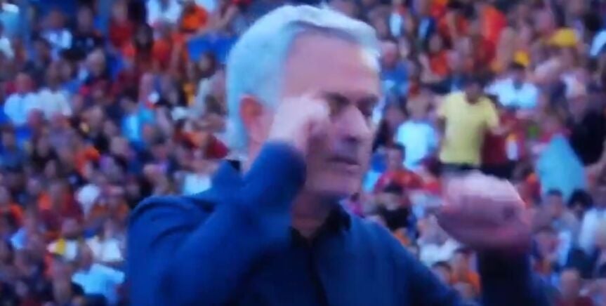 El Shaarawy anotó en el tiempo de descuento el tanto que daba la victoria a la Roma y Mourinho aprovechó el momento para dirigirse al banquillo rival y hacer el gesto de llorar.