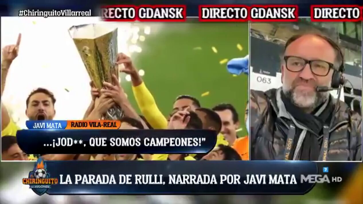 Javi Mata, comentarista de Radio Vila-Real, pasó por 'El Chiringuito' para contar su narración del momento histórico en el que el Villareal se proclamó campeón de la UEFA Europa League.