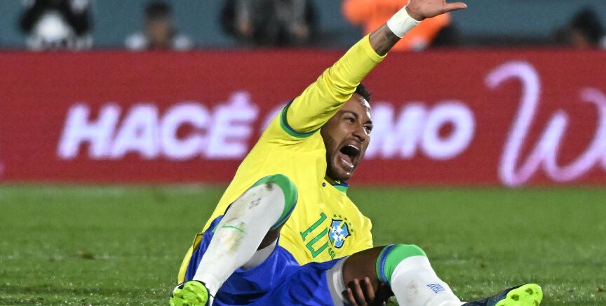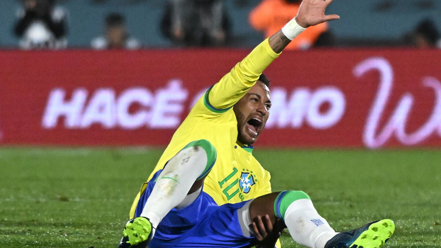 El jugador del Al-Hilal se retiró en camilla llorando tras una dura entrada del uruguayo De la Cruz. Brasil confirmó un un esguince grave de rodilla... pero puede ser peor.