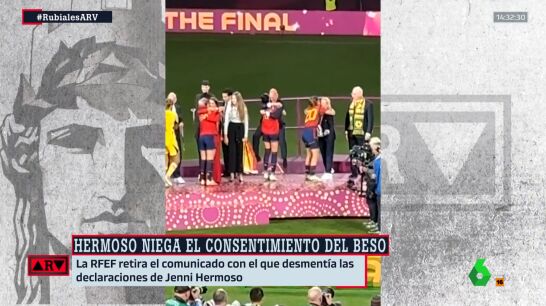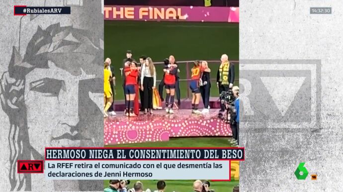 La RFEF, el viernes de madrugada, publicó una nota acompañada de cuatro fotos tratando de demostrar que Jenni "agarraba a Rubiales primero por la espalda": "Él debe acercar sus brazos a la espalda de la jugadora como fruto de que lo ha elevado del suelo y pueda así mantener el equilibrio".