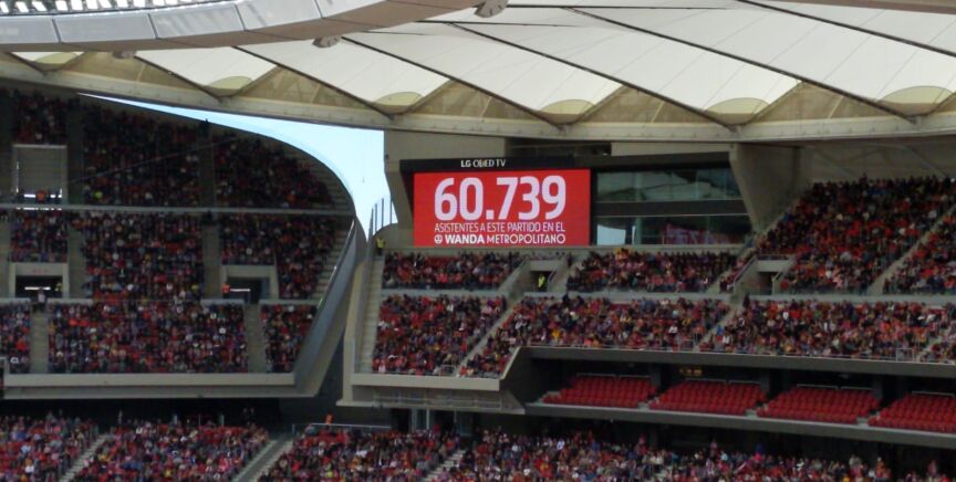 Con 60.739 espectadores en las gradas, el Wanda Metropolitano logró este domingo el récord de asistencia a un partido de fútbol femenino en España. El Atlético de Madrid, que recibió al Barcelona en un encuentro correspondiente a la 24ª jornada de la Liga Iberdrola, difundió a través de sus redes sociales la cifra récord en un partido de fútbol femenino en España: 60.739 aficionados.