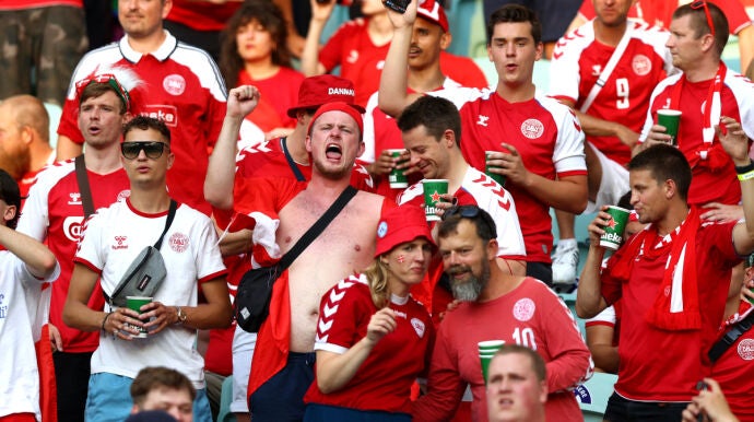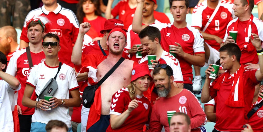 Empleados del estadio de Bakú retiraron la bandera arcoíris a unos aficionados en el transcurso del República Checa - Dinamarca. UEFA dice que el hincha estaba "muy ebrio".