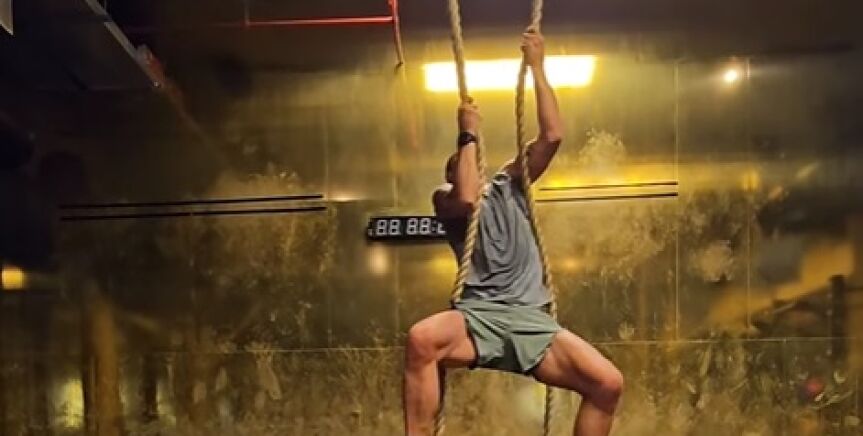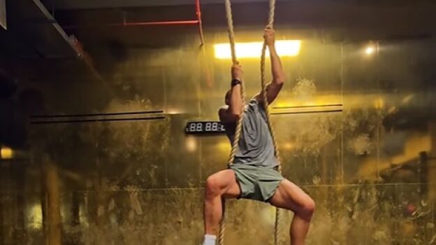 Zlatan siempre se ha caracterizado por saber combinar una envergadura descomunal con una habilidad y elasticidad a disposición de pocos. El entrenamiento consiste en subir, utilizando solo la fuerza de los brazos, por dos cuerdas que cuelgan del techo.