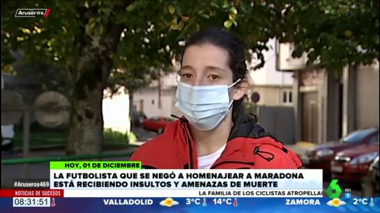 La futbolista del Viajes Interrías asegura que "fanáticos de Maradona" no han parado de enviarle amenazas tras su gesto en el partido ante el Deportivo de la Coruña.