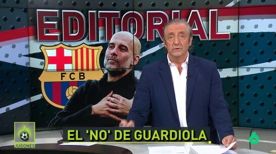"A Pep le queda un año de contrato con el City y después podría dirigir a una selección. Nadie duda del barcelonismo de Guardiola, pero ahora no toca, es algo que no está en su cabeza. Si algún día volviese no sería como entrenador, si algún día volviese sería como presidente", sentencia el presentador de 'Jugones'.