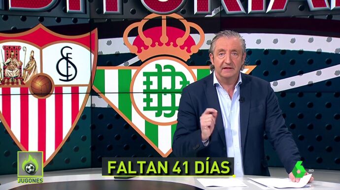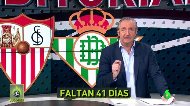 "Faltan 41 días. 41 días para que Sevilla y Betis se vuelvan a ver las caras. 41 días para que se enfrenten en el Sánchez-Pizjuán", dice el presentador de 'Jugones'.