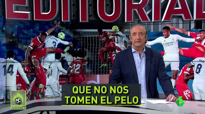 El presentador de 'Jugones' analiza en su editorial la mano señalada a Militao ante el Sevilla... y la compara con otras similares que no se han señalado en LaLiga.