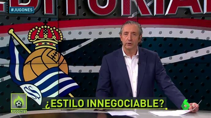 "Imanol estaba orgulloso ayer a pesar de encajar cuatro goles, orgulloso de mantener el estilo. La Real es un equipo reconocible, juega bien al fútbol y consigue resultados. Bravo. Pero Imanol debe reflexionar. No siempre hay que jugar igual.", afirma el presentador de 'Jugones'.