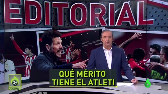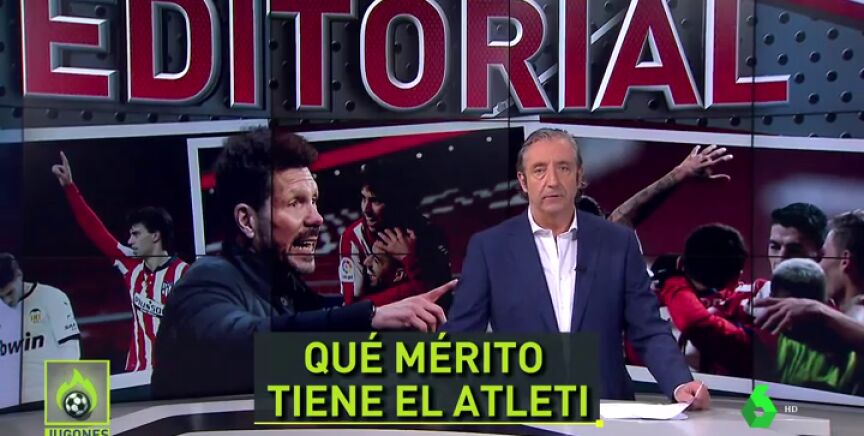 "Tiene mucho mérito lo del Atlético de Simeone. Me da igual que sea el entrenador mejor pagado. El Cholo ha conseguido que el Atleti esté entre los grandes todos los años". Así de contundente ha arrancado Josep Pedrerol su editorial en 'Jugones'.