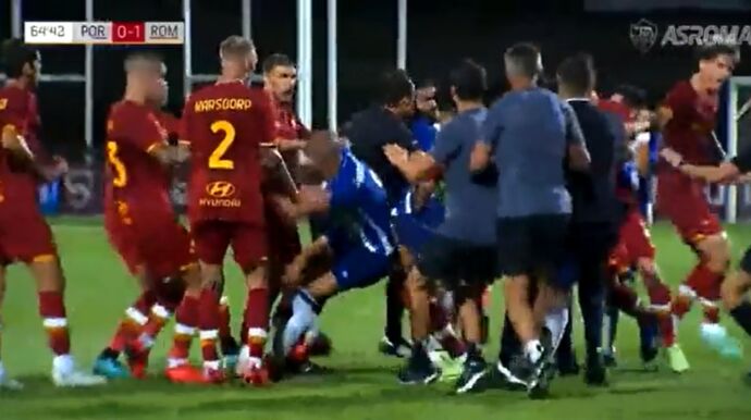 El central portugués vuelve a las andadas y provoca con una patada a destiempo una pelea innecesaria en el partido amistoso que enfrentaba a Porto y Roma.