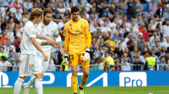 Superado y señalado. No ha sido la mejor tarde (ni el mejor día) en la carrera de Thibaut Courtois. Si se las prometían felices en el Bernabéu en esta tarde de Champions, al que primero se le hizo de noche fue al portero madridista. Dos goles en tres remates del Brujas en la primera parte, o lo que es lo mismo, dos tantos del dorsal 42 Enmmanuel Dennis trastabillándose, que no dejaban en buen lugar ni a la defensa blanca, ni al meta belga, puesto que la sensación de peligro cada vez que el Brujas pasaba el medio campo era terrible.