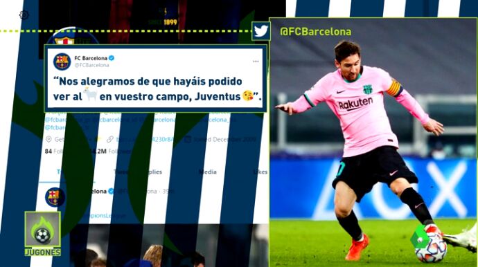 Tras la victoria del FC Barcelona frente a la Juventus, el conjunto culé publicó un mensaje en Twitter destinado al cuadro italiano: "Nos alegramos de que hayáis podido ver al más grande en vuestro campo".