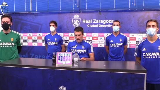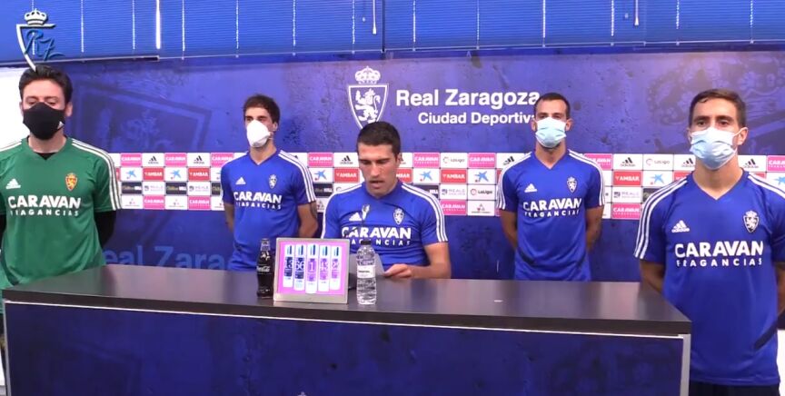 Alberto Zapater, capitán del equipo, ha leído la nota en sala de prensa durante la mañana de este jueves. "Estamos hartos", ha comenzado diciendo el jugador, acompañado por Cristian Álvarez, Íñigo Eguaras, Alberto Guitián y Javi Ros.