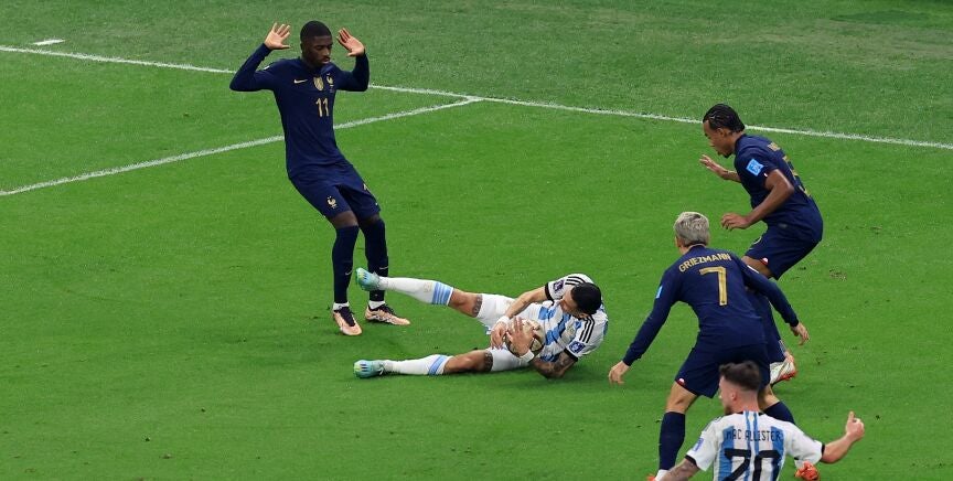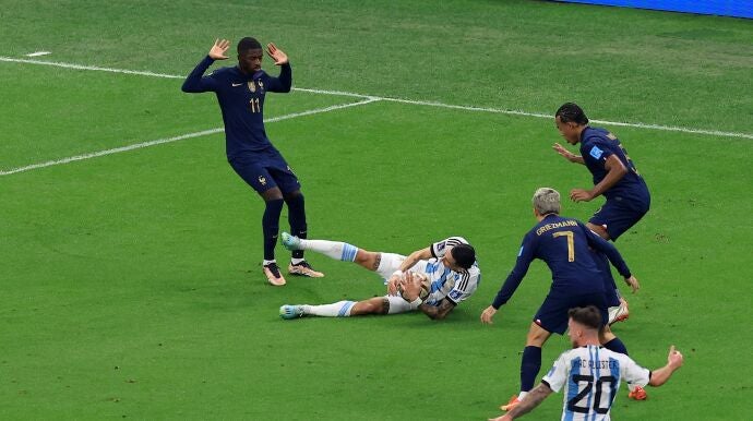 Una final tiene que tener de todo. Y si es una final de Mundial, más todavía. El Argentina - Francia de Qatar 2022 tuvo una acción más que discutida en la mitad de la primera parte, cuando una acción de Ángel di María en el área terminó con el argentino en el verde y con el árbitro, el polaco Marciniak, señalando pena máxima.
