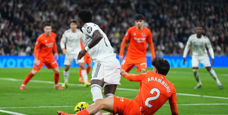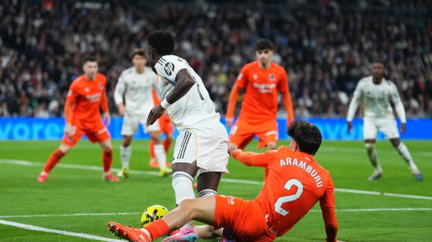 El Madrid había firmado un primer tiempo muy completo. Con 3-1 en el marcador y nada más comenzar la primera parte, Vinícius le tiró un caño a Aramburu dentro del área. El brasileño se había deshecho del lateral venezolano pero cayó al suelo ante la entrada de su marca.