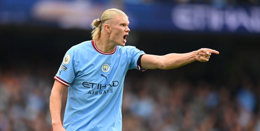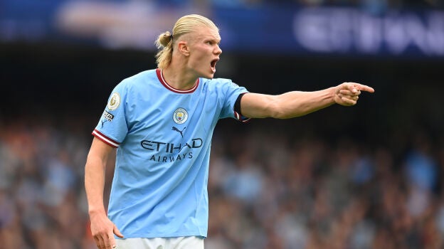 Erling Haaland es el pichichi de la Premier League con 14 goles en 8 encuentros. Marcó otro triplete ante el Manchester United en la victoria del Manchester City por seis goles a tres.