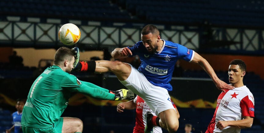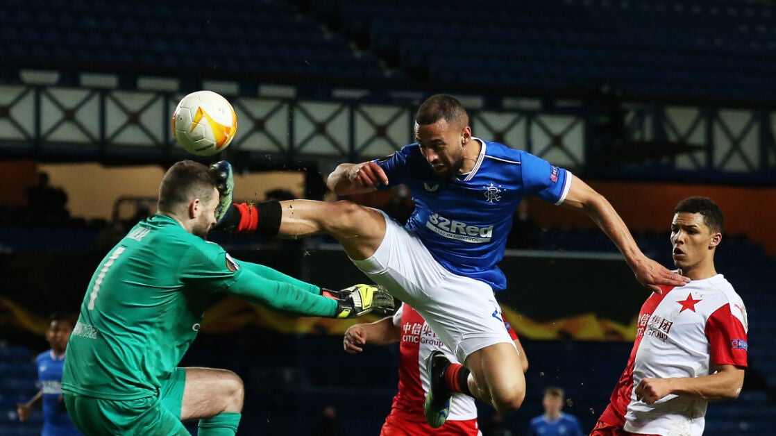 Pudo acabar muy mal: la brutal patada en la cabeza de un jugador del Rangers al portero del Slavia en la Europa League