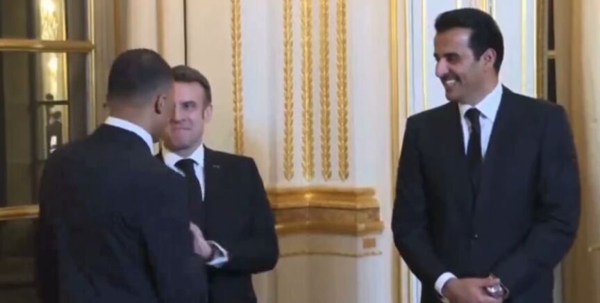 El futbolista francés acudió a la recepción del Emir de Qatar en el Eliseo y Emmanuel Macron, presidente de la República Francesa, no dudó en bromear con él ante las cámaras.